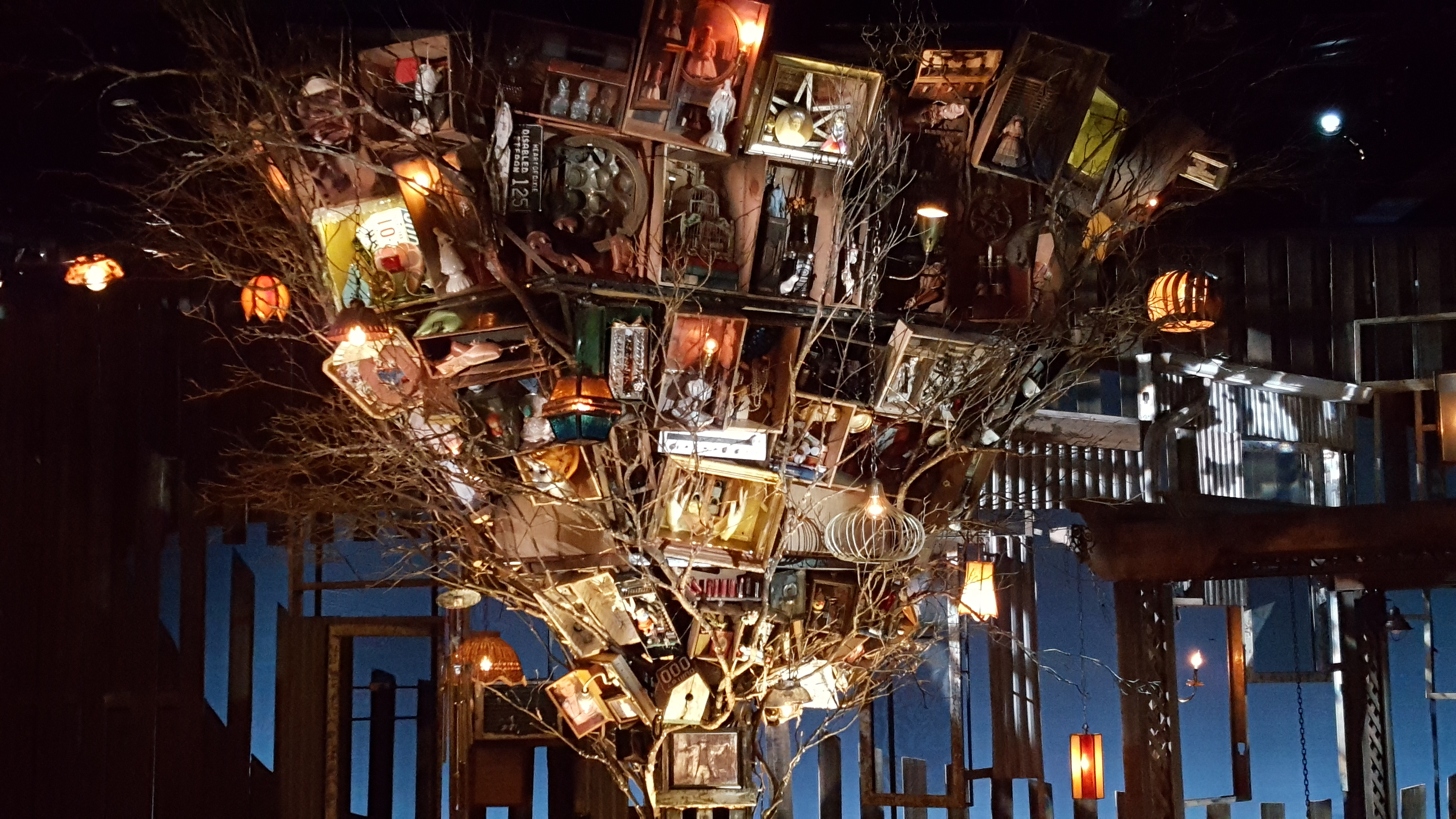 “Designer James J. Fenton’s homespun unit set depicts the backyard of Robert’s rural home and features a towering tree with branches that display a large collection of shadow boxes representing memories of happy times.” BROADWAY WORLD, by Michael Dale