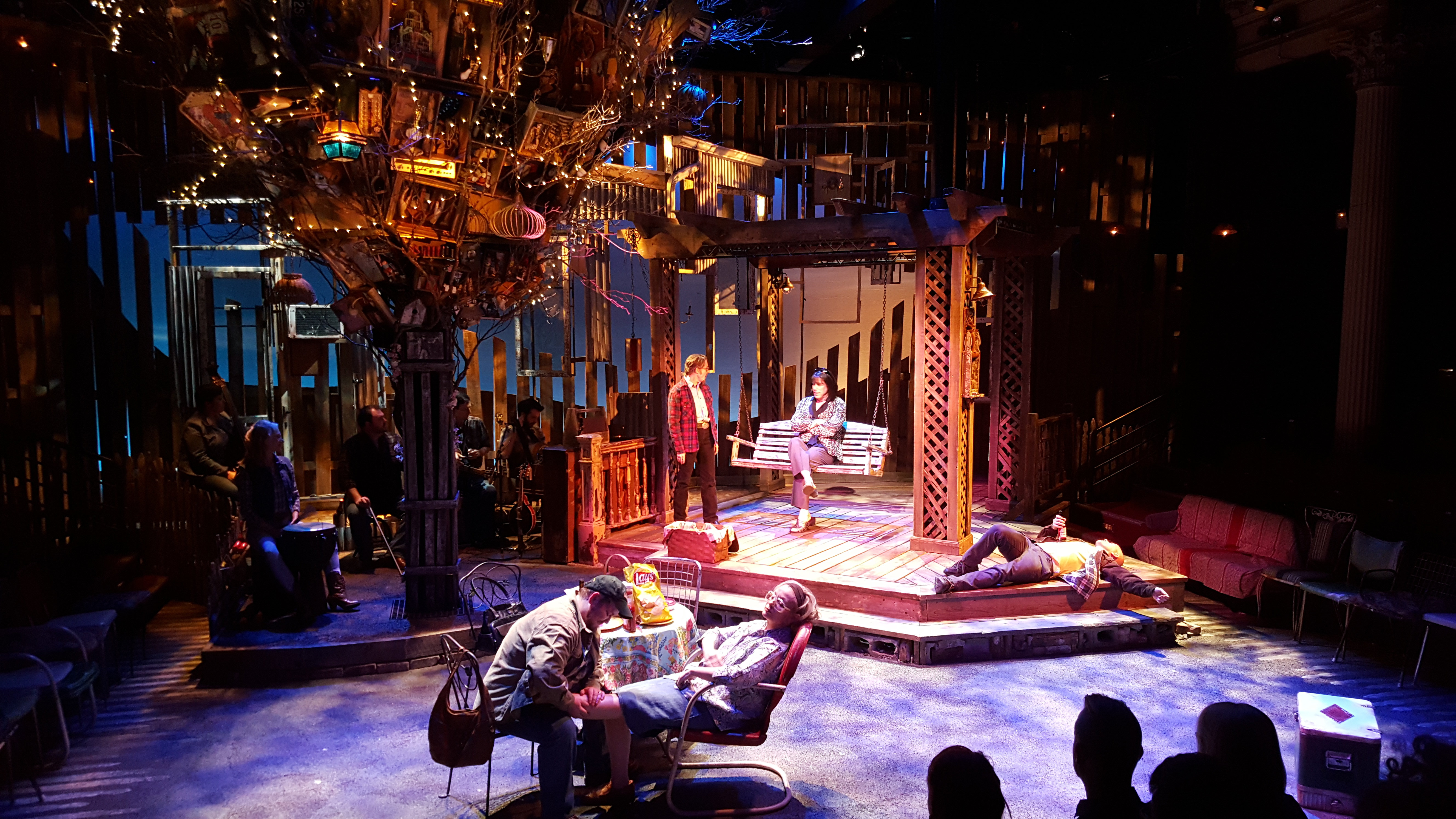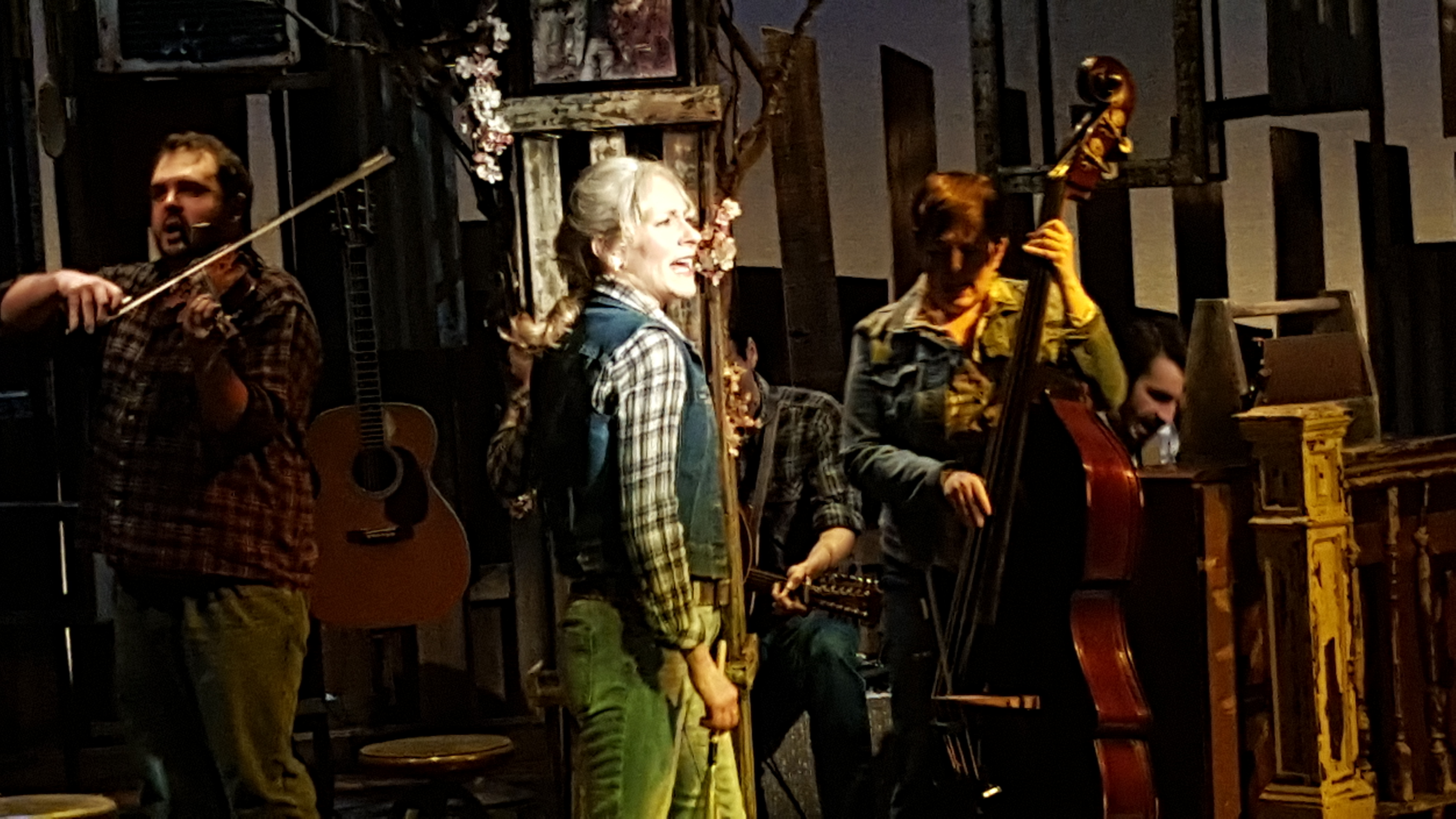 "..there’s still so much beauty here. The twangy folk-bluegrass songs are played with gusto by five musicians, most of whom take on small roles. James J. Fenton’s set, especially its tree festooned with memorabilia, invites you into this intimate community." TIME OUT NEW YORK, by Raven Snook
