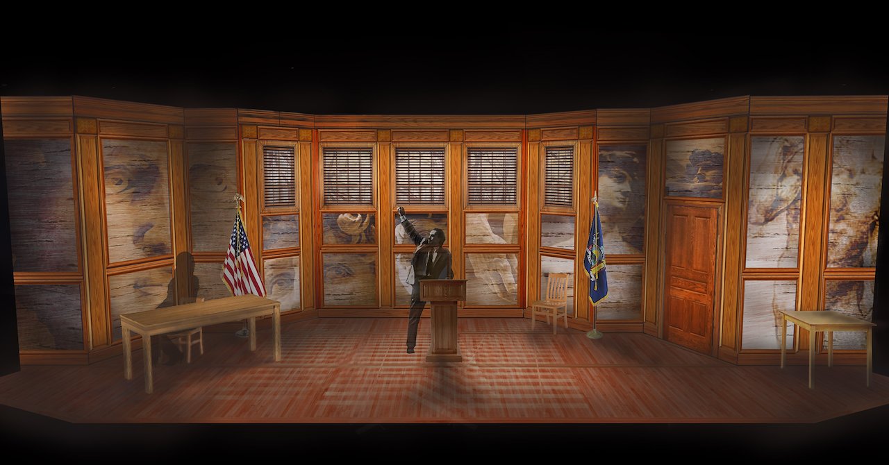 Rendering for the World Premiere production of KUNSTLER at Hudson Stage Company. Directed by Annette O'Toole and starring Jeff McCarthy.