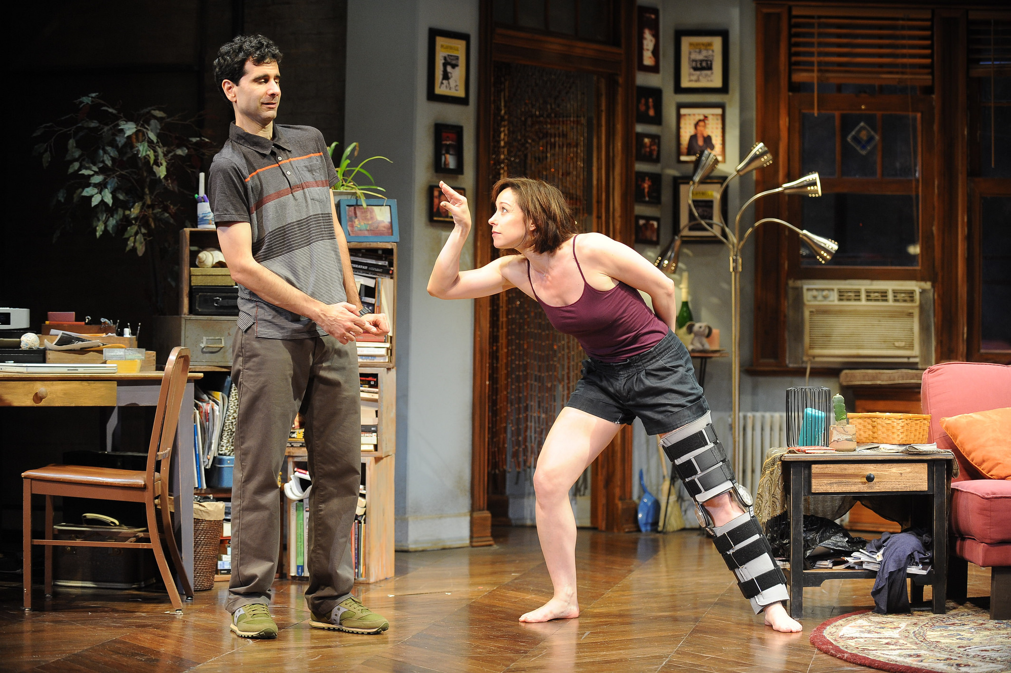 “The set by James J. Fenton perfectly captures a small, old NYC apartment. This is no glamorous building with a gigantic amount of space. It is small and cluttered. Mary Louis Geiger, the lighting designer, establishes both the space and the mood beautifully. In addition, credit must be given to costume designer Sara Jean Tosetti and projection designer Andrew Bauer. The later does a great job at establishing the scenes that occur outside the apartment.” TWO ON THE AISLE by Karen Isaacs