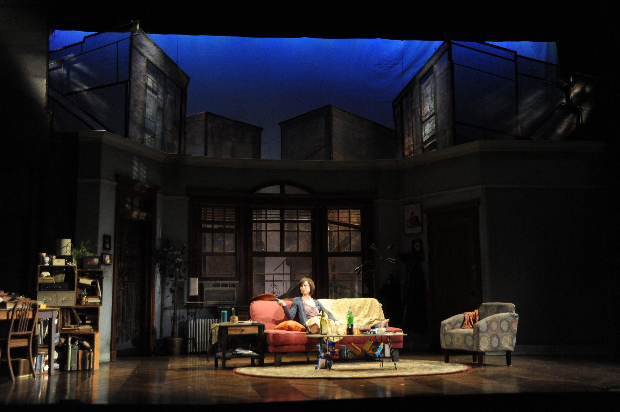 “The scenic design by James J. Fenton perfectly created the sense of Senga’s shabby, expensive, New York high-rise apartment. Suiting her melancholy there were askew accents. Like the disconfigured window shade. It signifies a woman who regards her living space as nothing more than a place to rest her body when not on stage.” BERKSHIRE FINE ARTS by Charles Giuliano