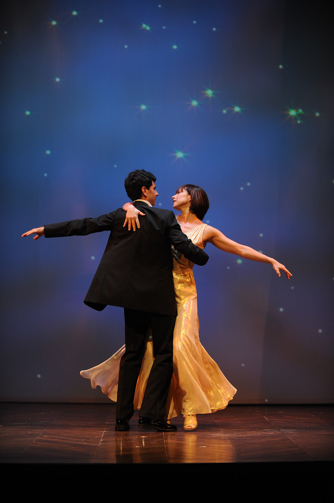 “James J. Fenton’s unit set focuses on Senga’s Manhattan apartment in which most of the action takes place. But, also accommodates several detours to Ever’s apartment, a lecture hall in the New York Institute of Technology where he teaches and the the Millenium Hotel Ballroom for a satisfyingly romantic yet realistic conclusion. Those detours are greatly enhanced by Andrew Bauer’s projections, Mary Louise Geiger’s lighting and Christine O’Grady’s choreography. Kudos also to Sara Jean Tosetti’s characterizing costumes.” CURTAIN UP by Elyse Sommer