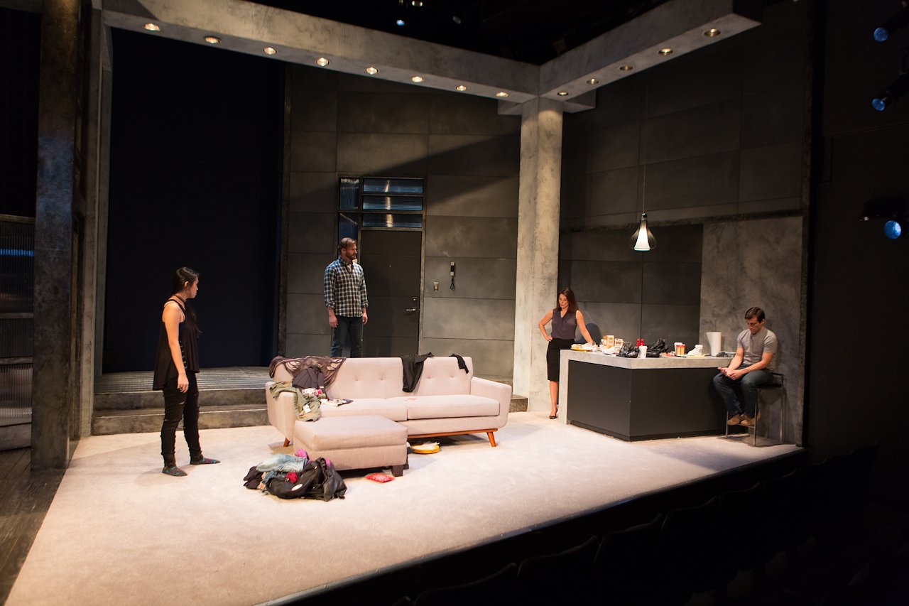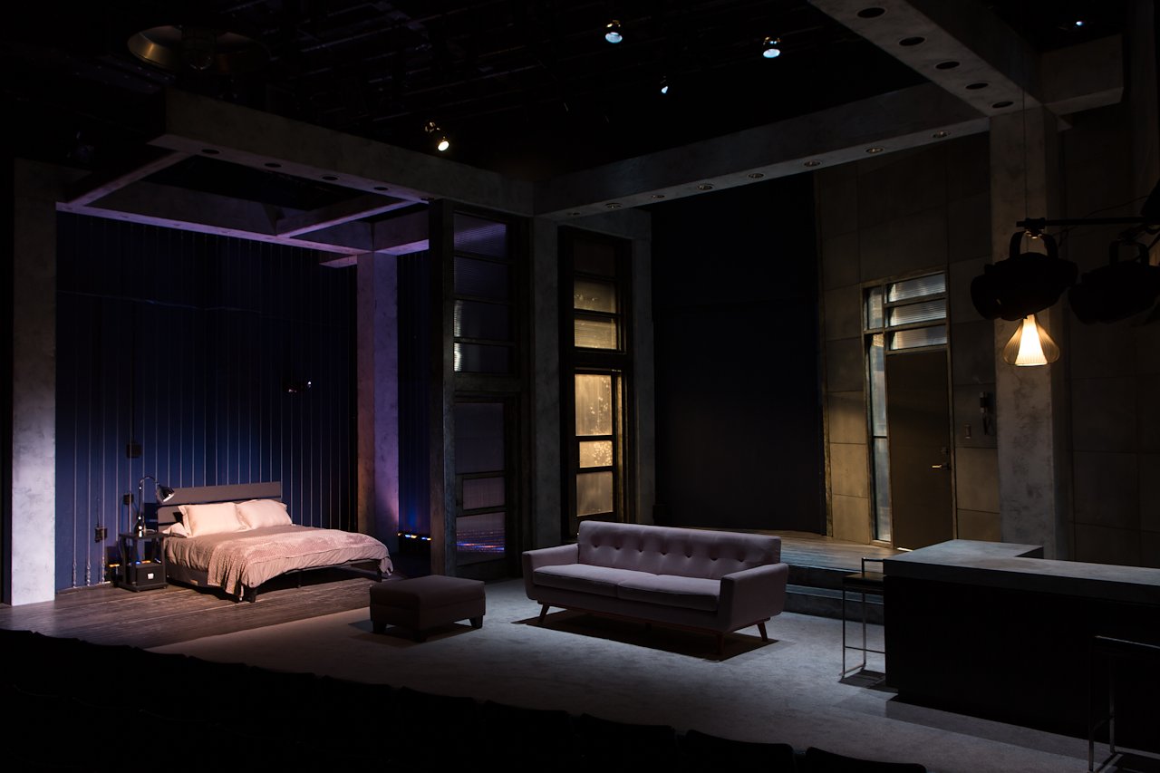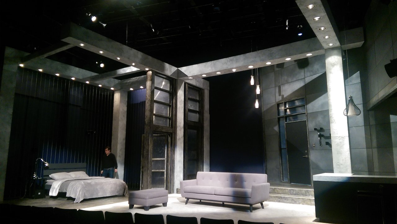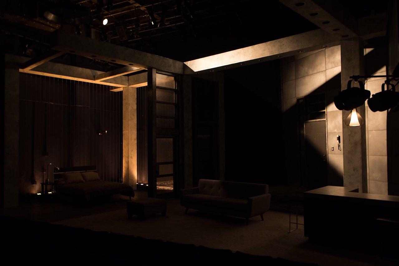 “James J. Fenton’s minimalist apartment setting in black, charcoal, grey and white is the latest is contemporary chic.” THEATRE SCENE.NET, by Victor Gluck