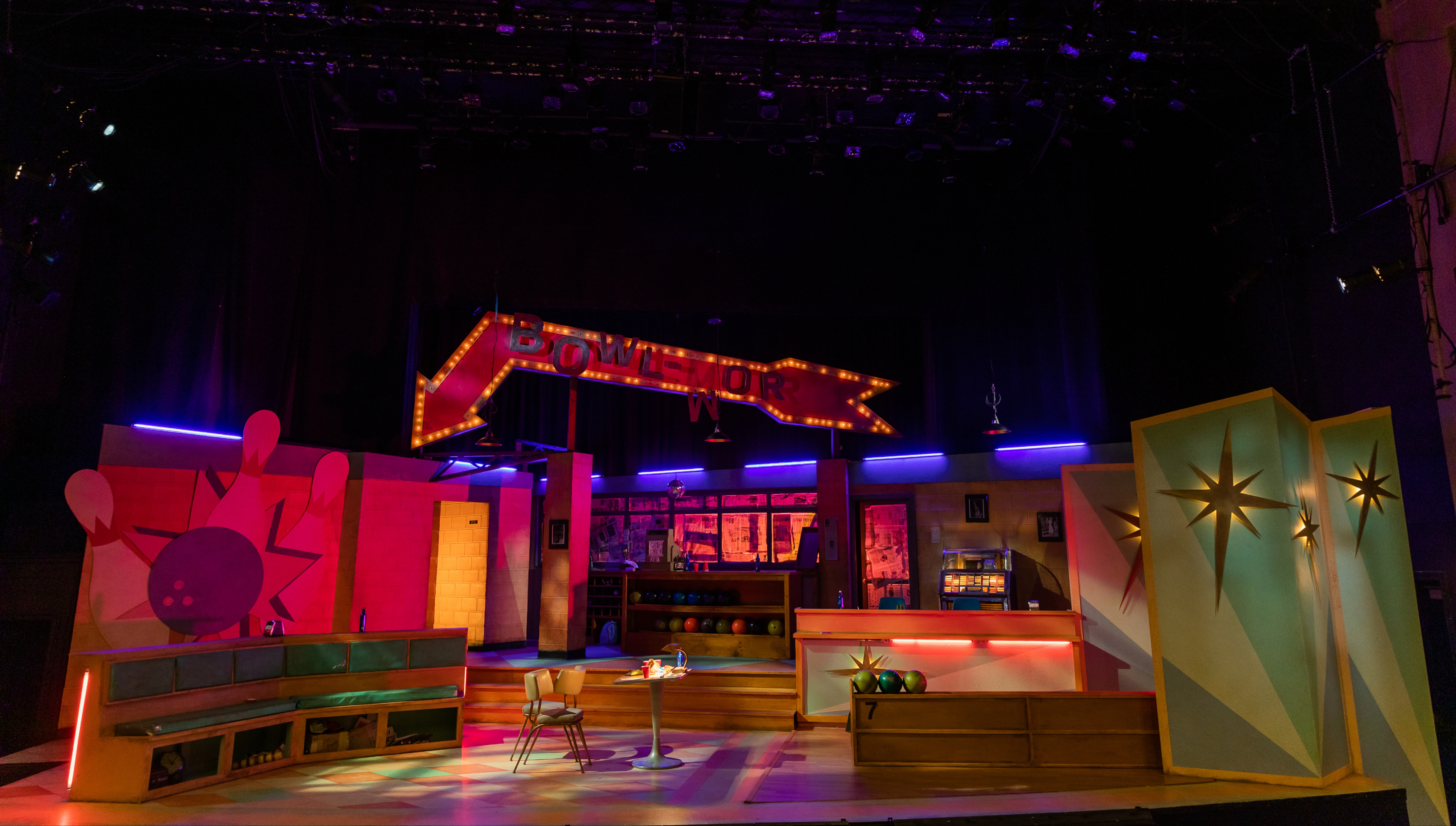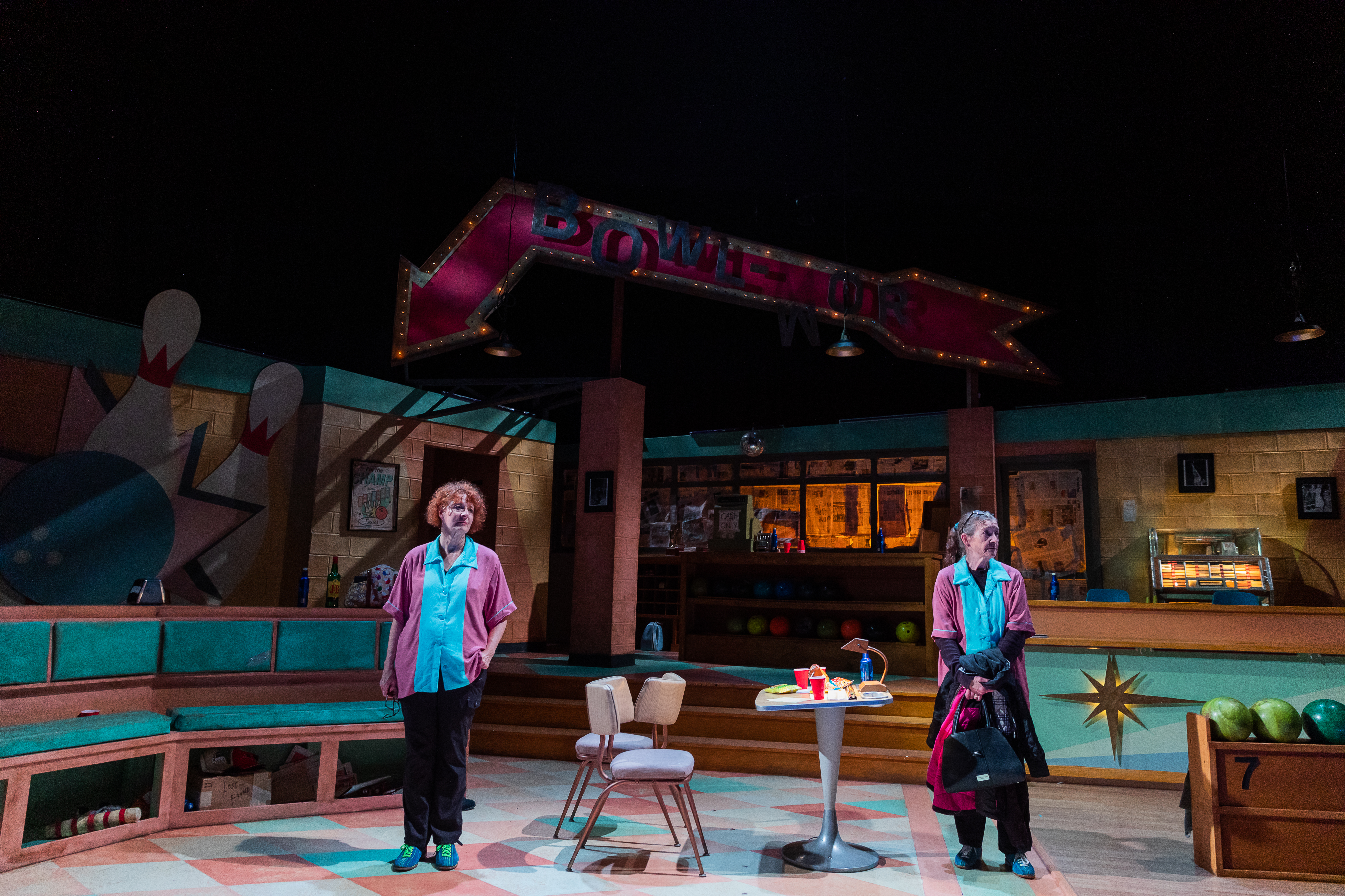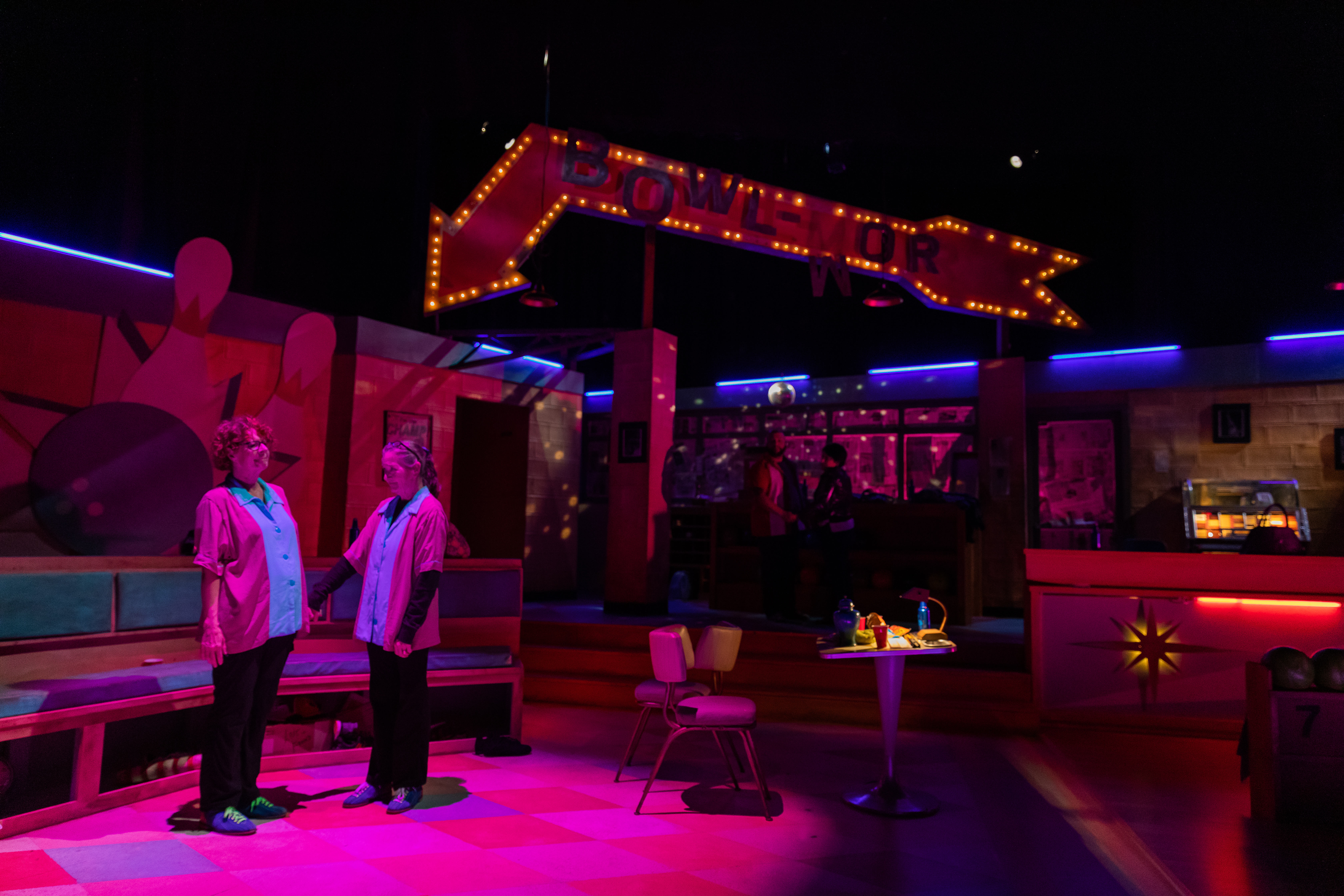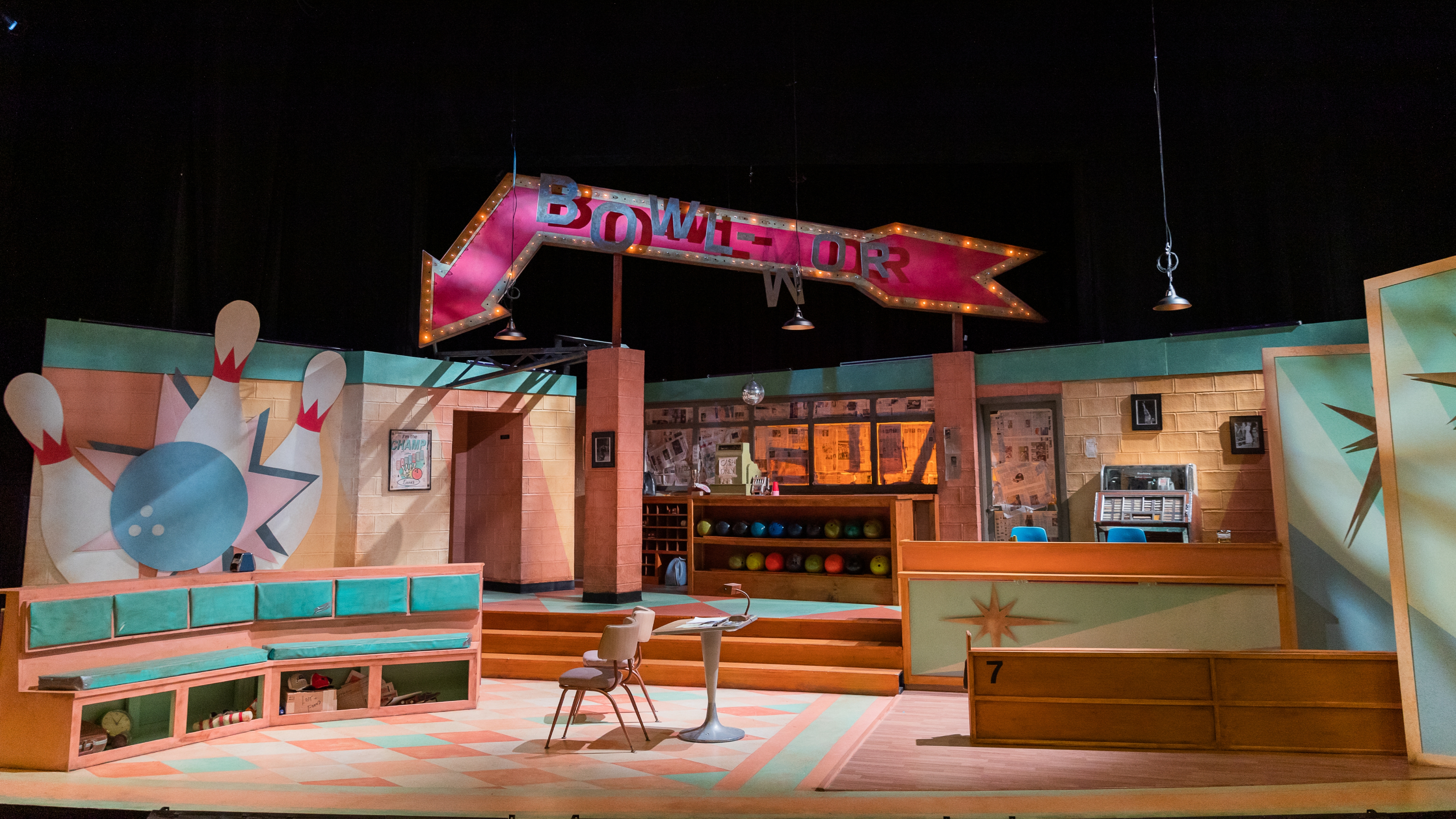 “The first way audiences encounter the significance of bowling in this production is with scenic designer, James J. Fenton’s, incredible set. The 1950’s-themed bowling alley is created as the perfect contradiction: from the audience it feels both expansive and intimate, run-down and yet clearly once well-maintained, slightly tacky and yet overwhelmingly charming. Yet with elements like a light-up jukebox, newspaper-covered windows, and a broken “Bowl-Mor Lanes” sign hanging overhead, this set also creates the perfect backdrop to this story of passing time and the changes that inevitably come with it.” ON STAGE BLOG, by Ashley Di Franza