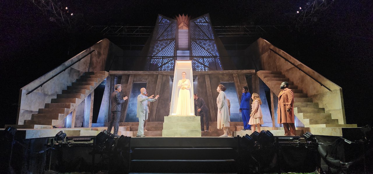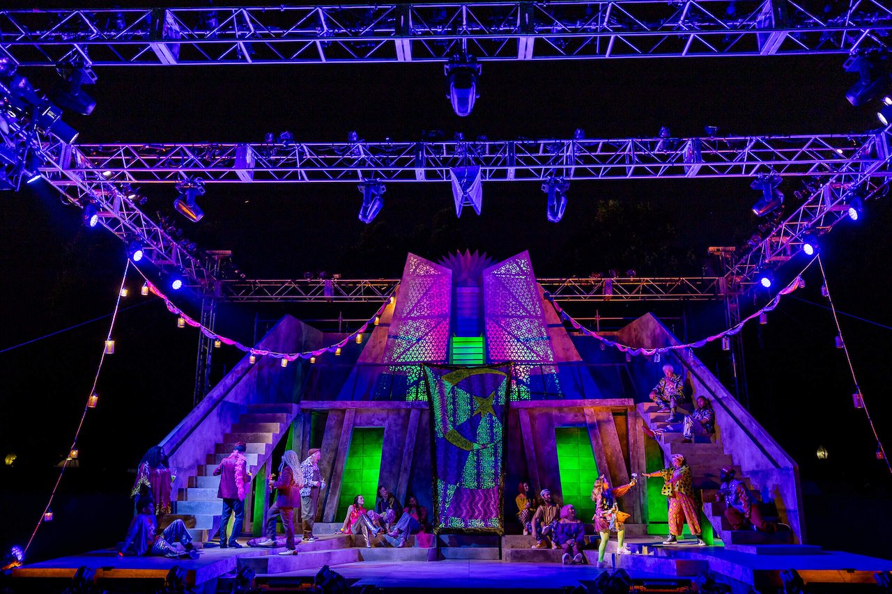 "The design team do equally heroic work: James J. Fenton's set is multi-layered, multi-leveled, and full of continuous surprises. Costume designer Rachel Padula-Shufelt clearly had fun working double duty as she envisioned the folks of two very different kingdoms – the formal, almost stuffy, Sicilians, and the fun-loving Bohemians, who certainly live up to the name here. David Remidios' sound design ensured that the outdoor venue lost nothing in terms of audibility, either in dialogue or in the imaginative and well-produced music." THE EDGE MEDIA NETWORK