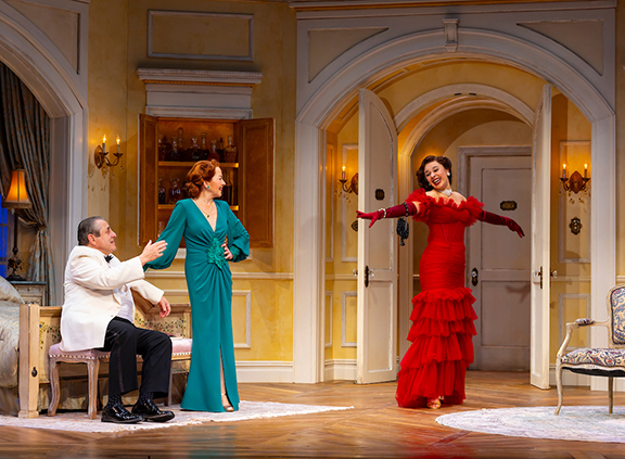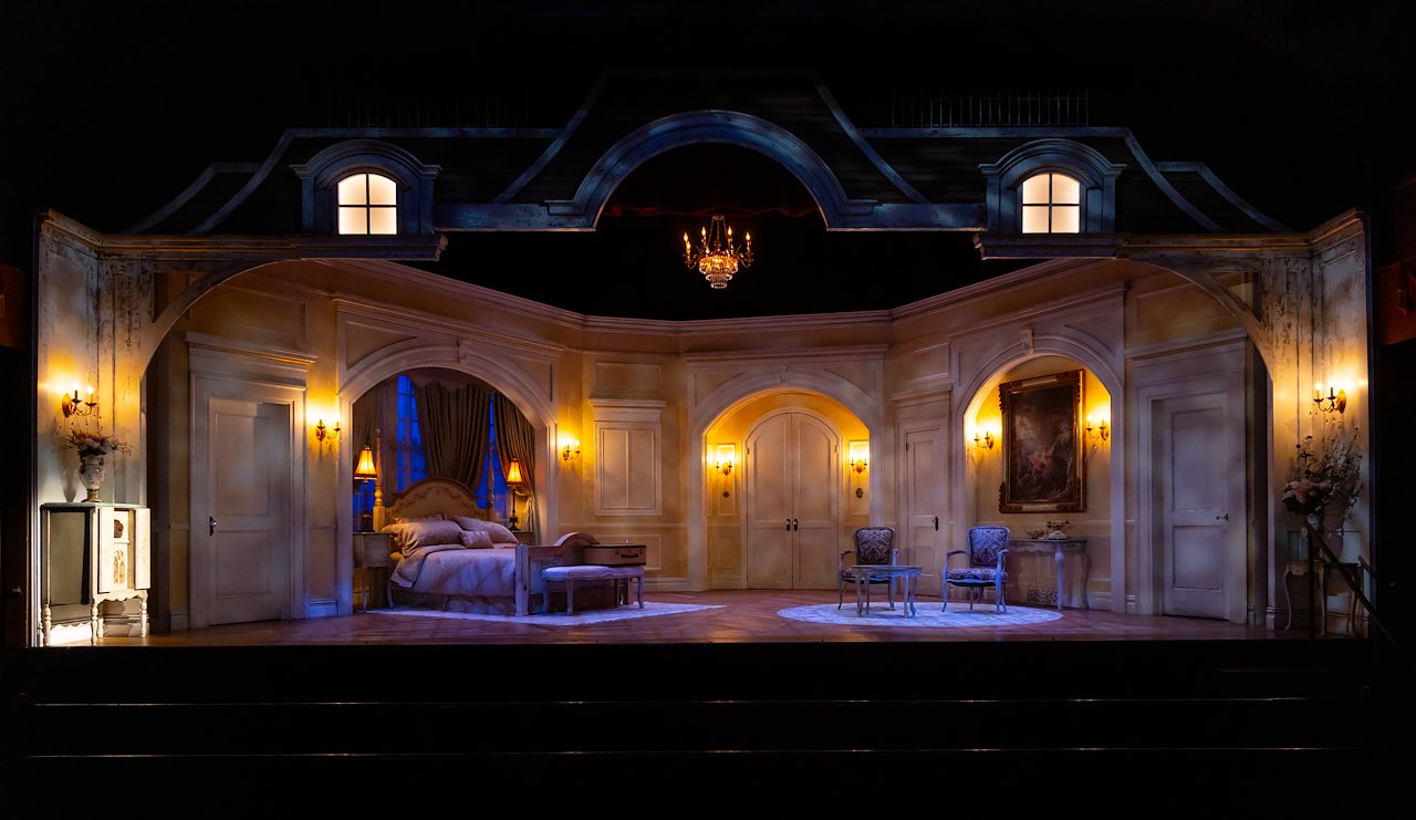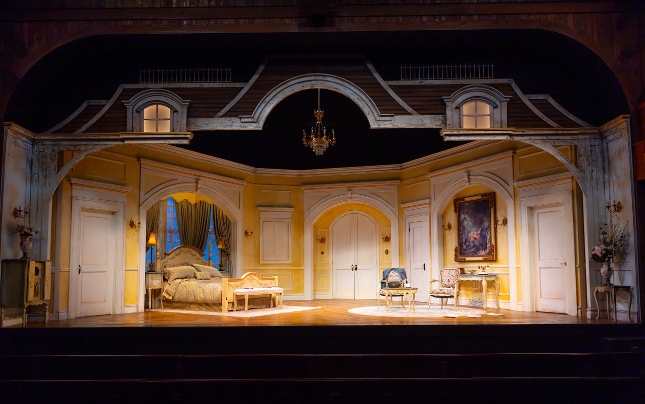 "Mark Shanahan directs this romantic love letter to thespians, on a glorious bedroom set designed by James J. Fenton, and lovely costumes by Annie J. Le." - Bonnie K. Goldberg, THE BALCONY AND BEYOND